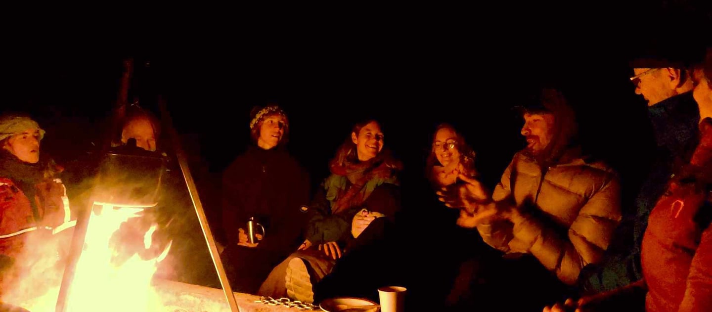 what happens when we gather as humans around a fire to share stories, songs, stirrings, silences and questions?
